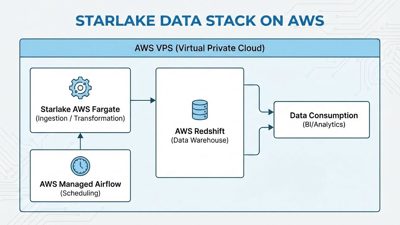 By leveraging native AWS primitives, Starlake ensures that your data stays within your VPC. No third-party SaaS access is required, drastically reducing your attack surface and simplifying compliance.
